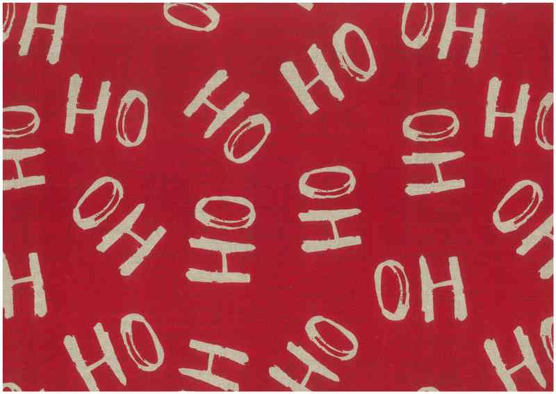 Christmas Linen Look Fabric 140cm - Ho Ho Ho - Red