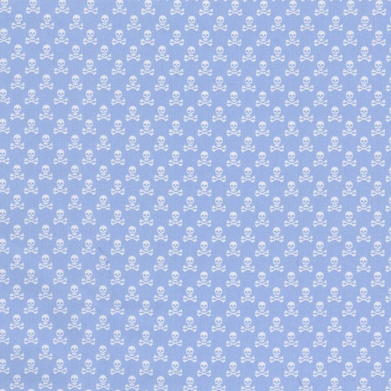 Skulls Printed Cotton - Light Blue
